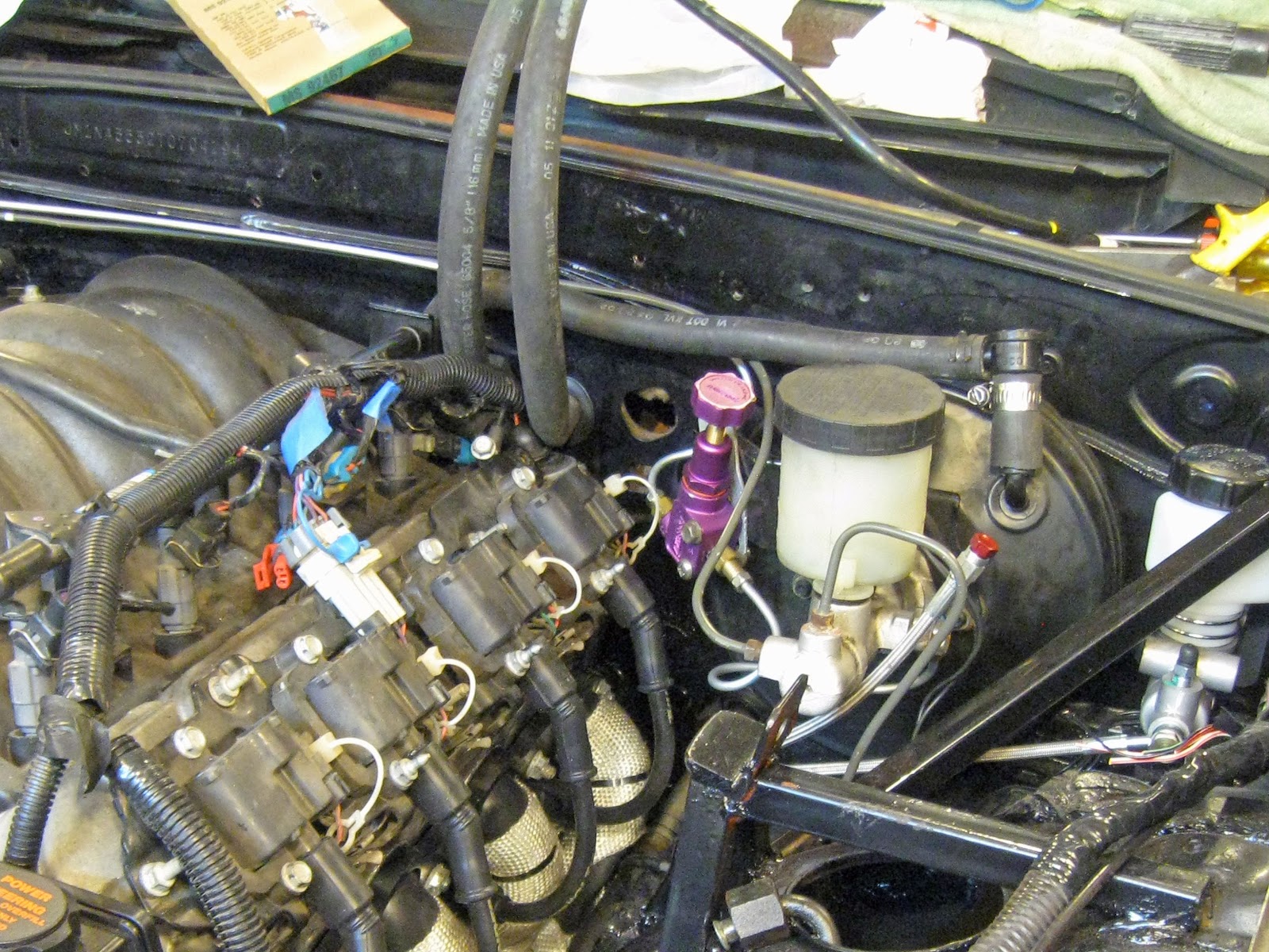 I also have the vacuum line to the brake booster hooked up now. For those of you trying this at home with an